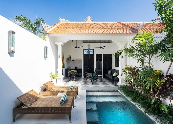 Die Martini Beachside Villa 2 liegt im Viertel Berawa und bietet Zimmer mit Blick auf den Pool, der sich von einer Terrasse aus öffnet.